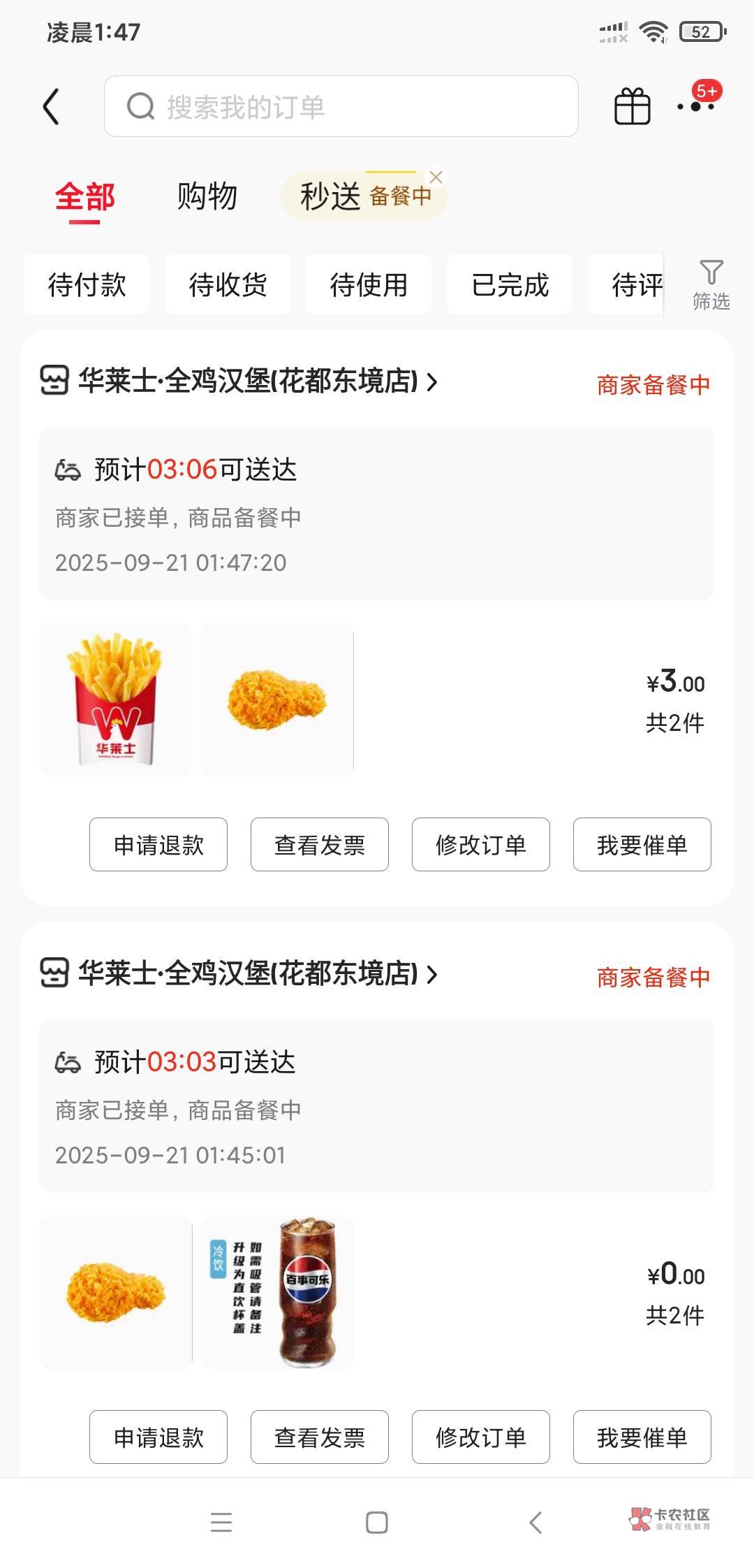 我点一个东西就是一元打包费,而且是满20起送,反正买两个10的就是抵扣16+4,然后付2打包费