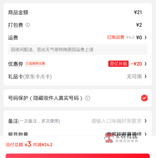我那个20-16的打包费也能减,比如20-16加上叠加4共减20我点19元加打包费1元刚好减20零元购