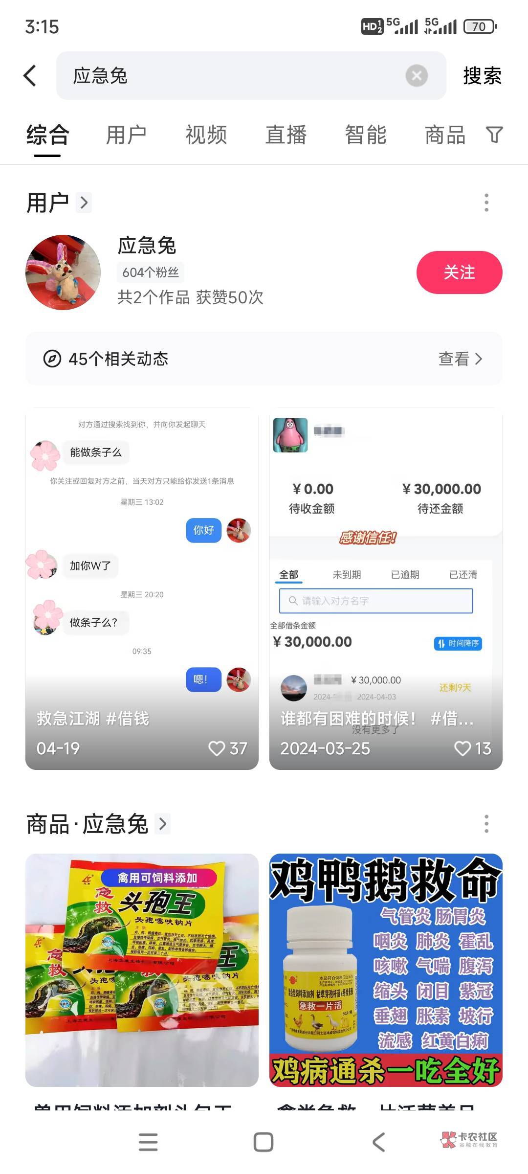 就去快手搜应急兔,用户里面的那个
