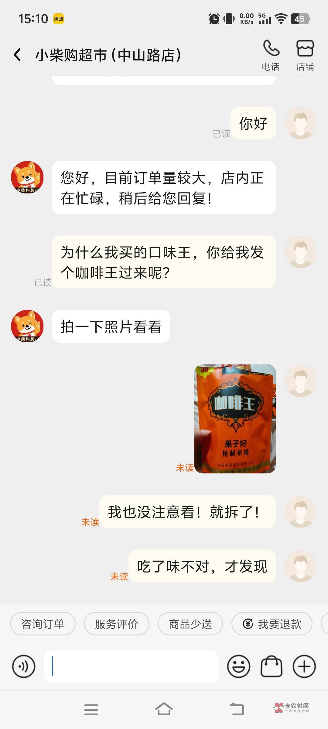 发财了假一赔十 310毛 直接去美团客服投诉,还要鸡毛口味王