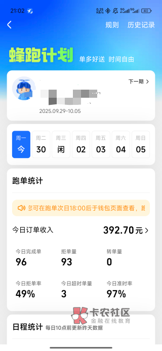 你这刚干没多久,适应下,潜力还能再挖挖。。。有个福州小哥,一月跑两万出来。。。睁眼就去跑,一直跑到系统强制休息不让接单,一个月跑满有两万多。。在他朋友圈看到刚晒的月收入,20700