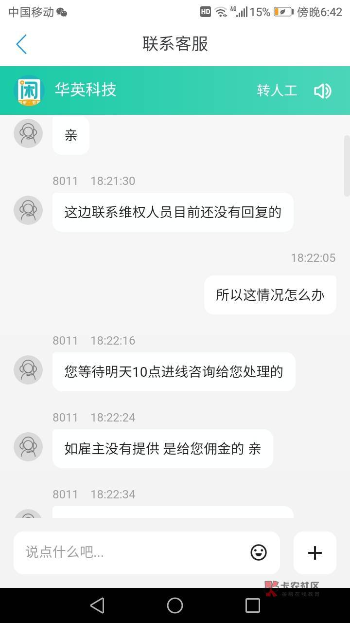 你这个估计又得拖到明天这个点,早上九点你就去找人工