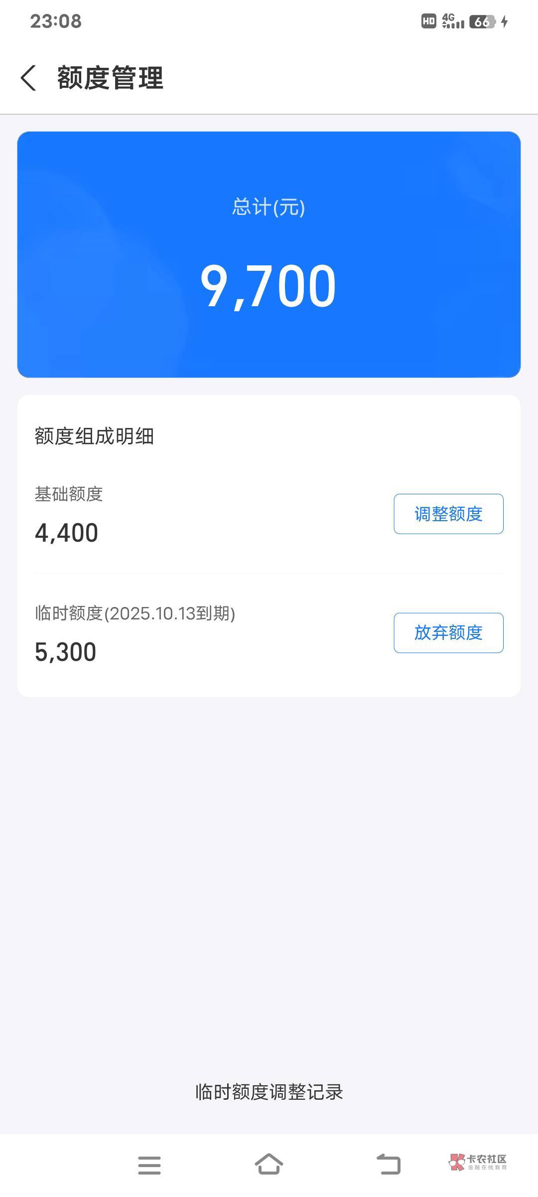 给了5300的临时额度