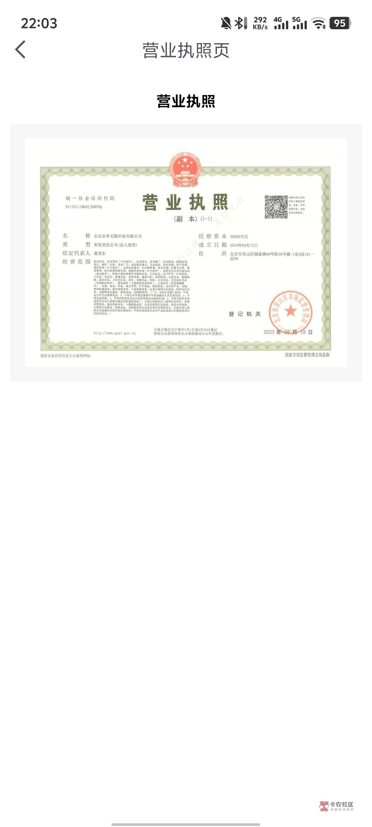 设置里面有它的营业执照