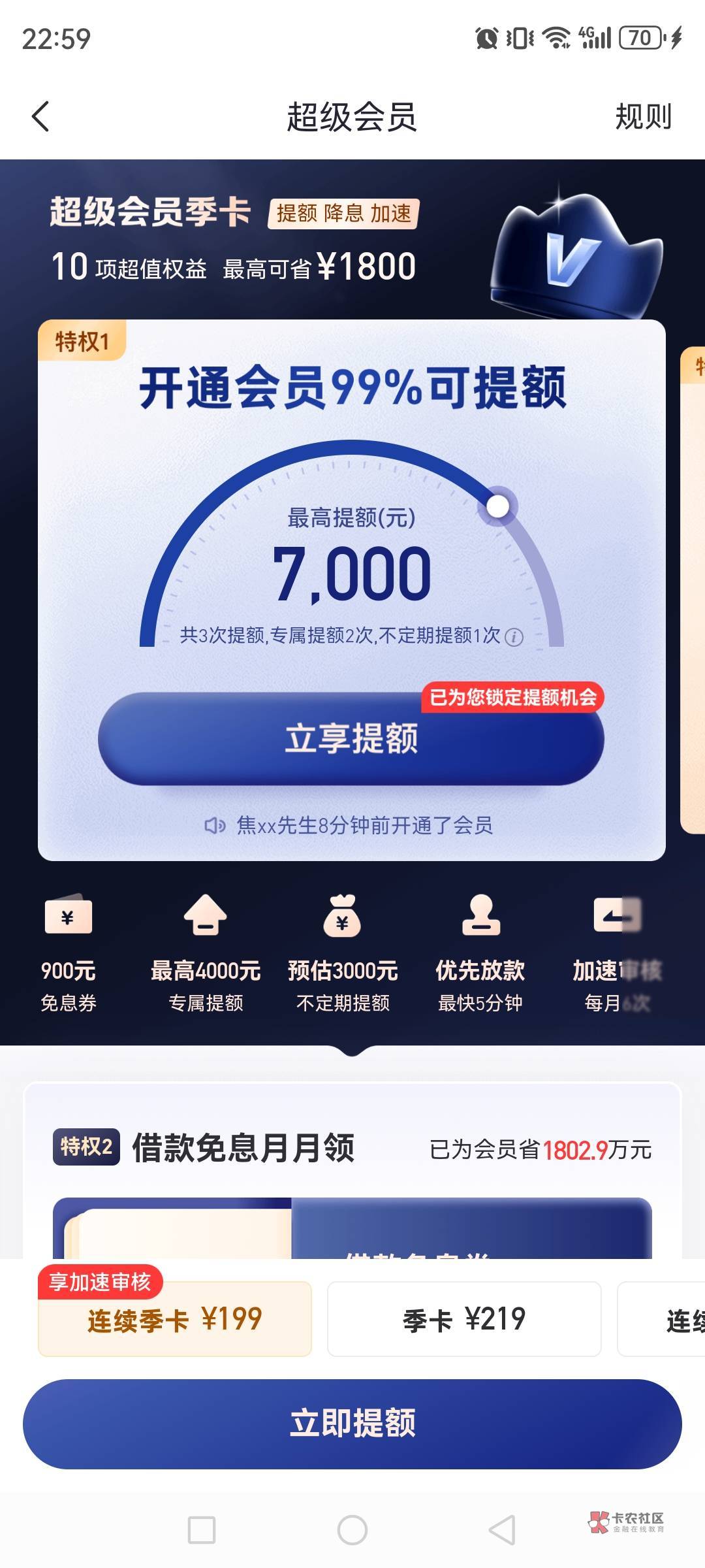 另外请教一下,这个开通会员,还能提升额度吗?