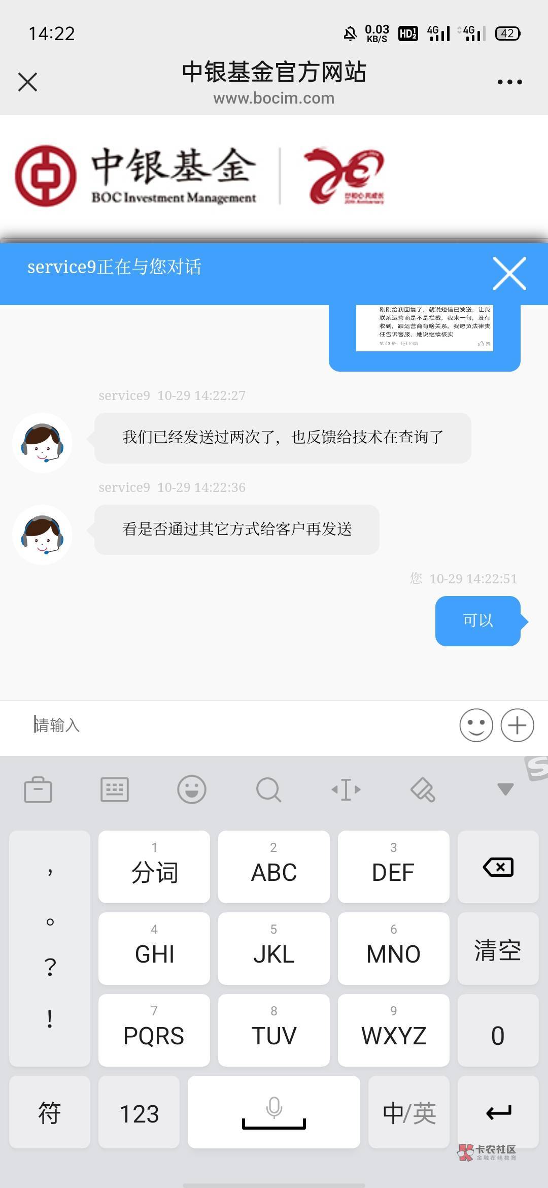 刚刚给我回复了,就说短信已发送,让我联系运营商是不是拦截,我来一句,没有收到,跟运营商有啥关系,我愿负法律责任告诉客服,她说继续核实