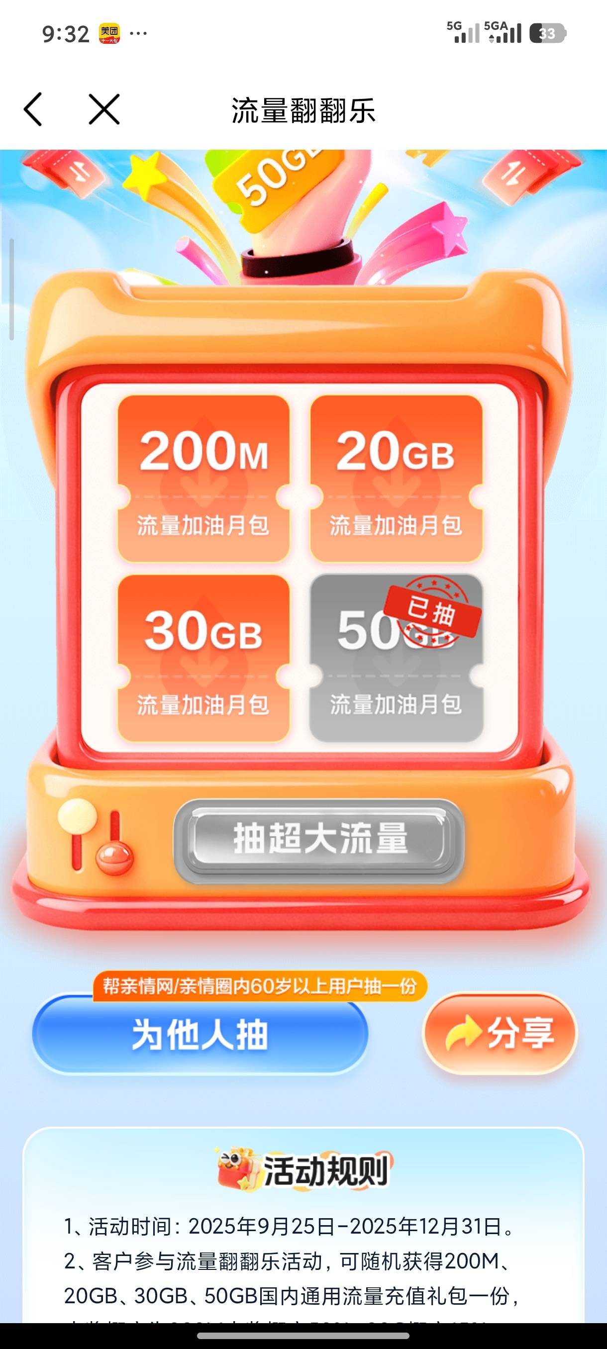 可以领5个G5G流量