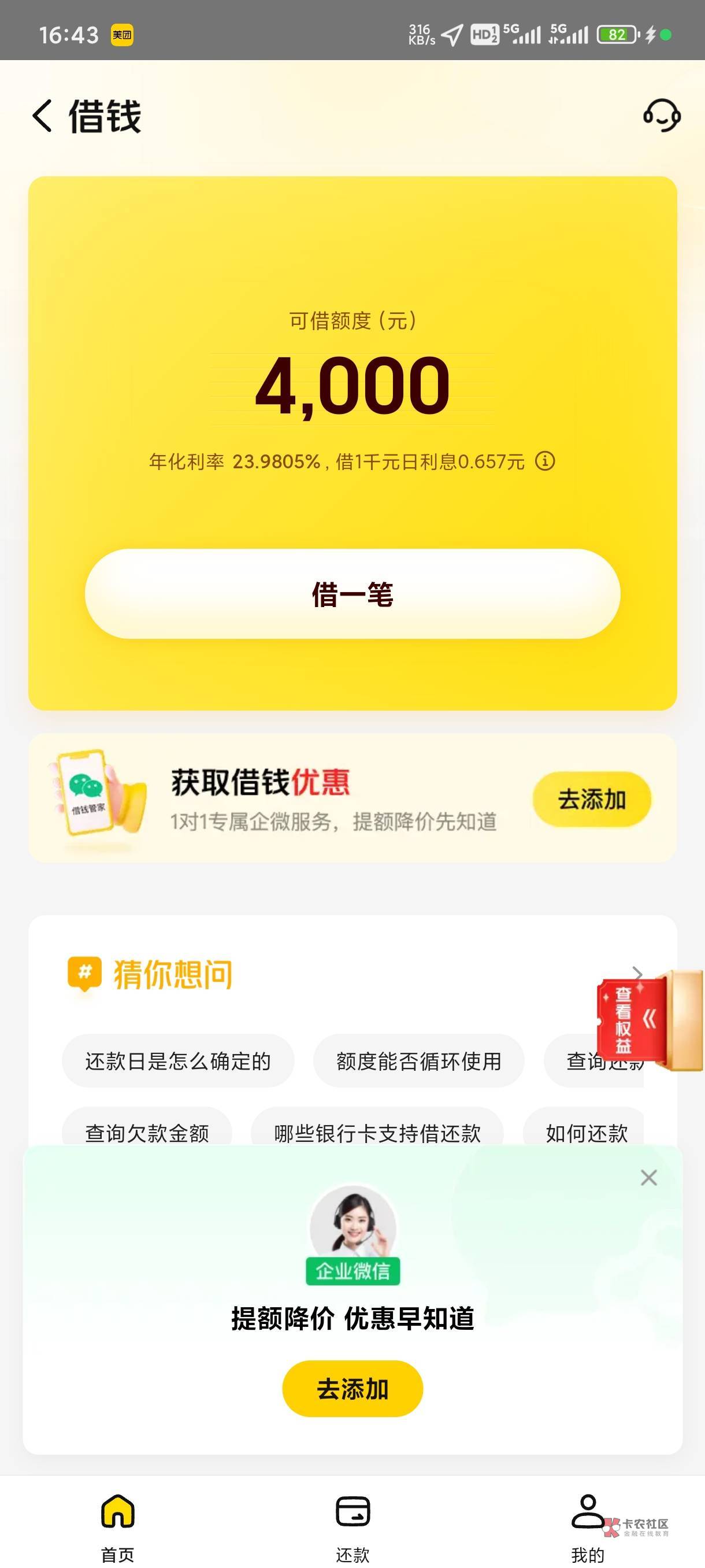 这个优Y花借的7000都马上还完了,T路了,借不出来了,准备看看美团行不行哦