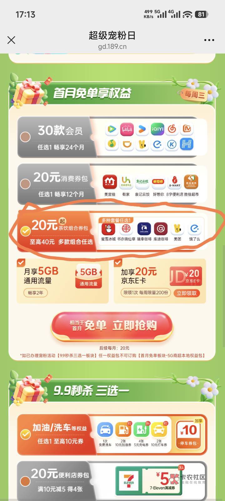 两个只能开一个,上面的可以瑞幸加10e卡,下面20e卡的显示领过了