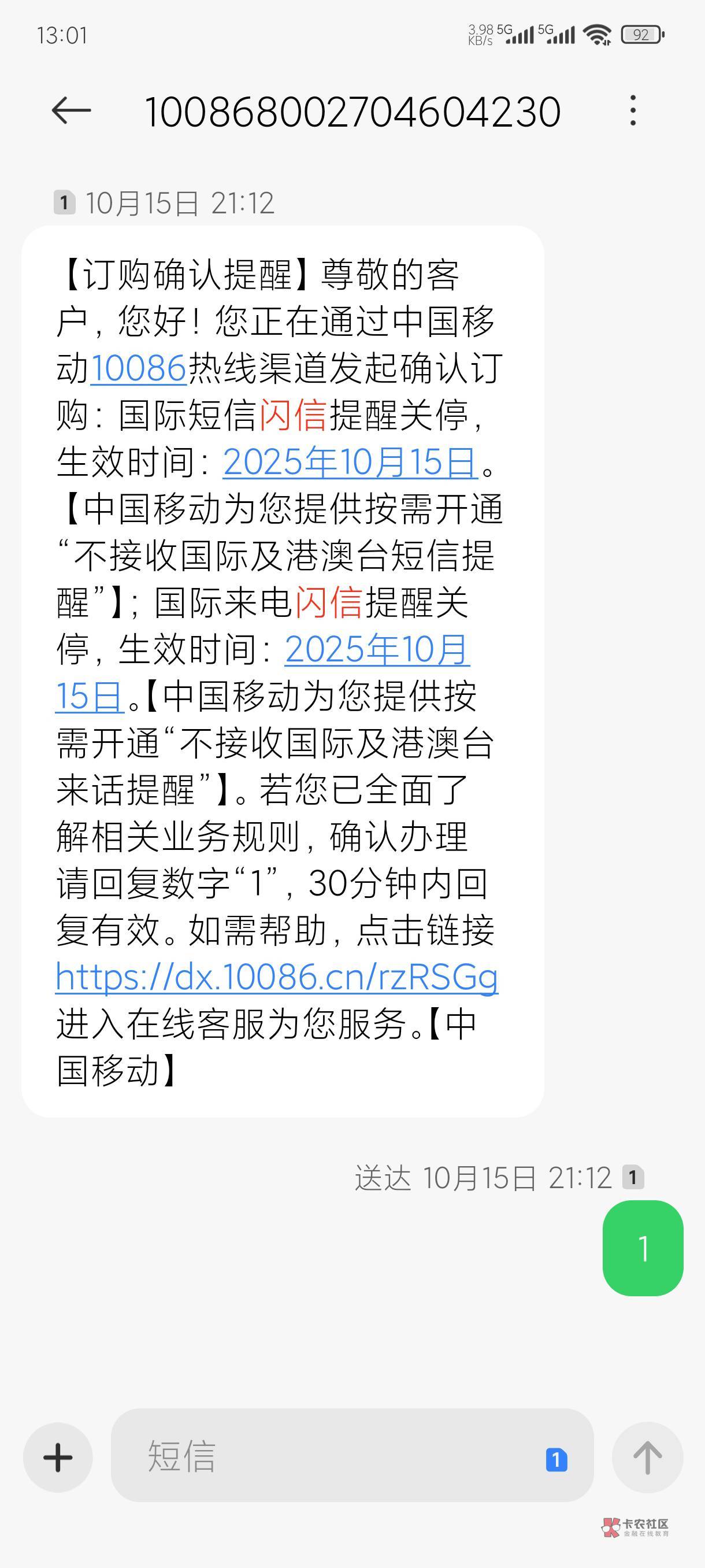 打开微信搜索中国移动高频率骚扰电话防护,全关掉。