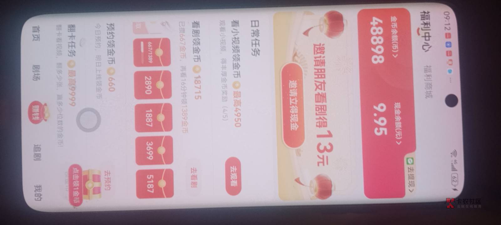 每天一上午就是刷广,下午基本不看
