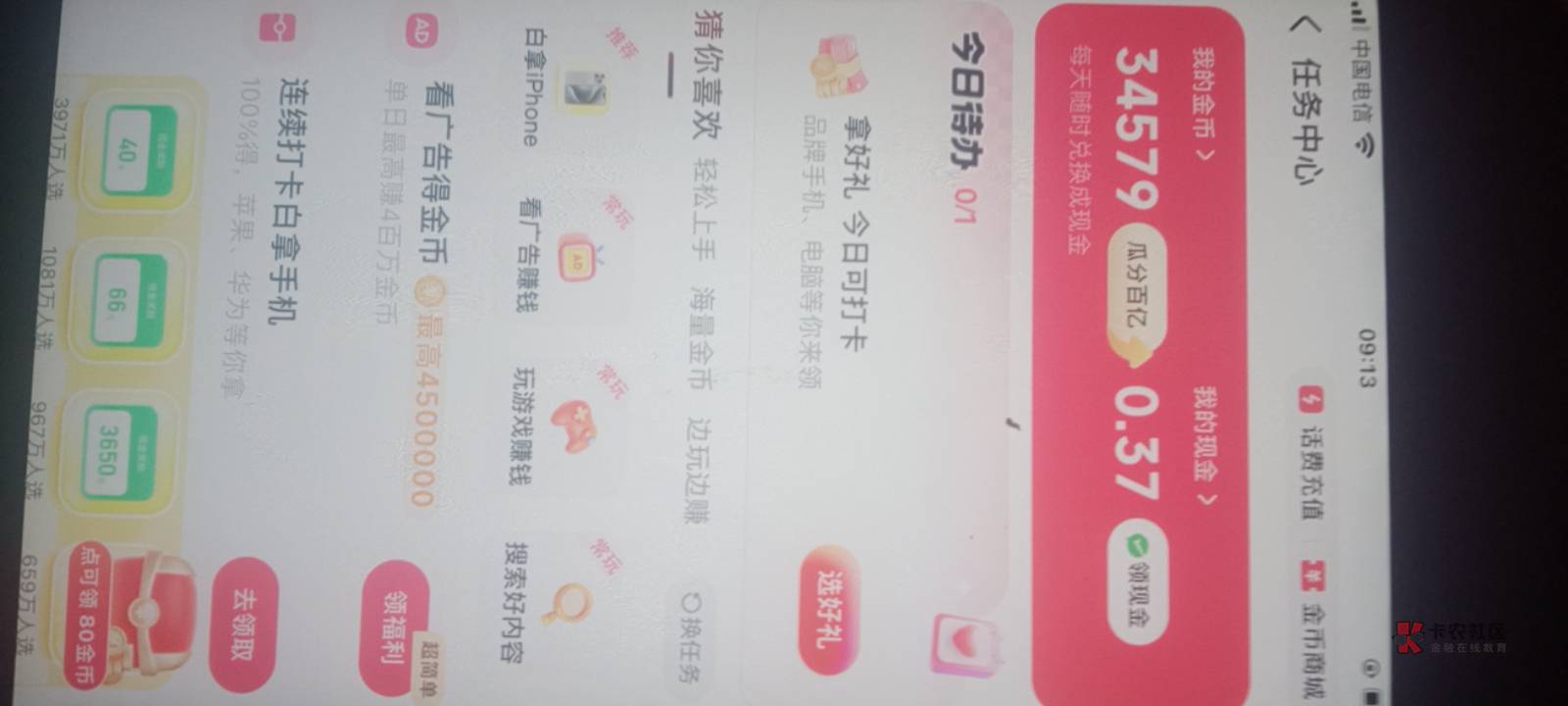 我八十几部手机天天签到完就休息。不看广告