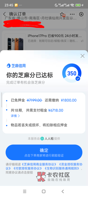 ,交了这1800还要商家审核,也许会看你的芝麻分和芝麻信用,有逾期的都过不了
