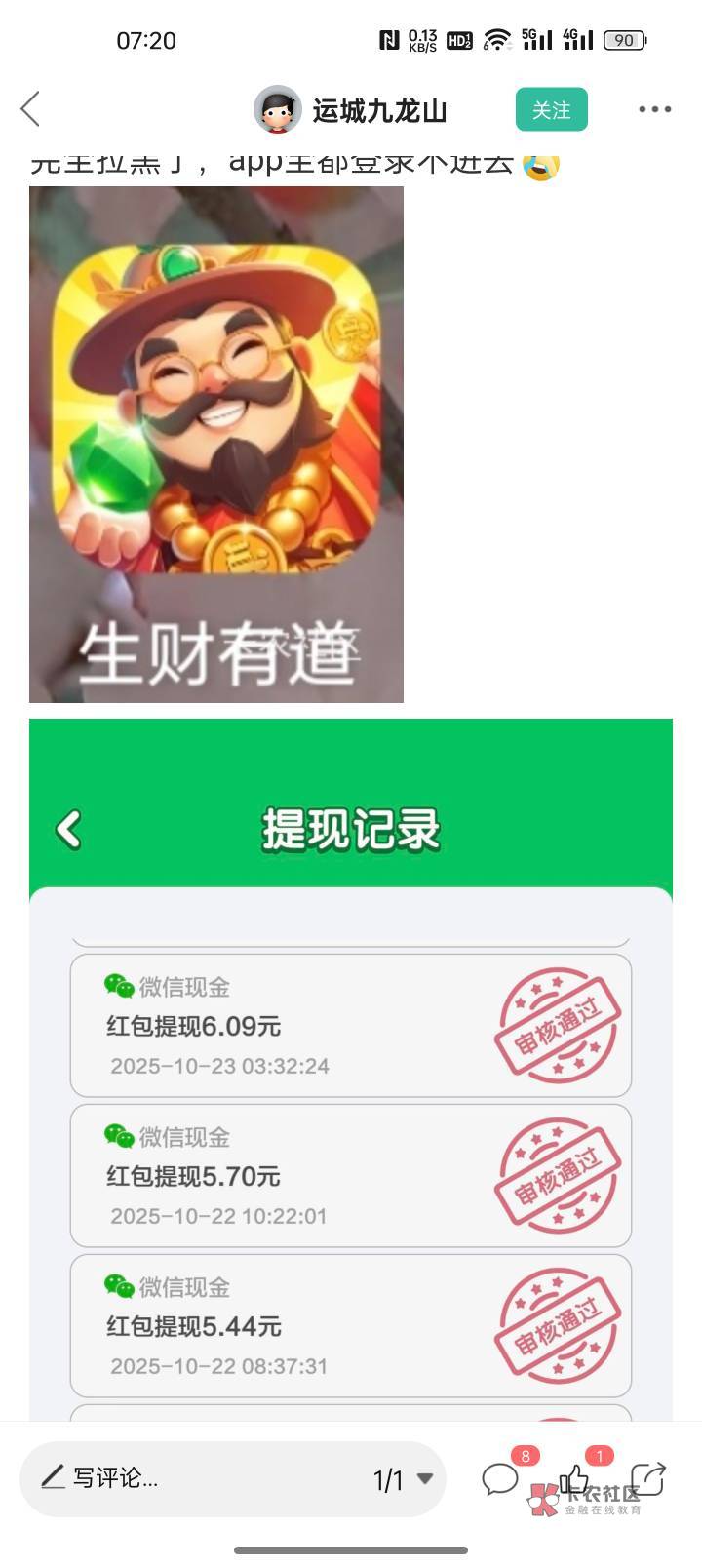 反正在论坛里看见的,有一个是一个我没赚过,快手反而申请了七八百了。
