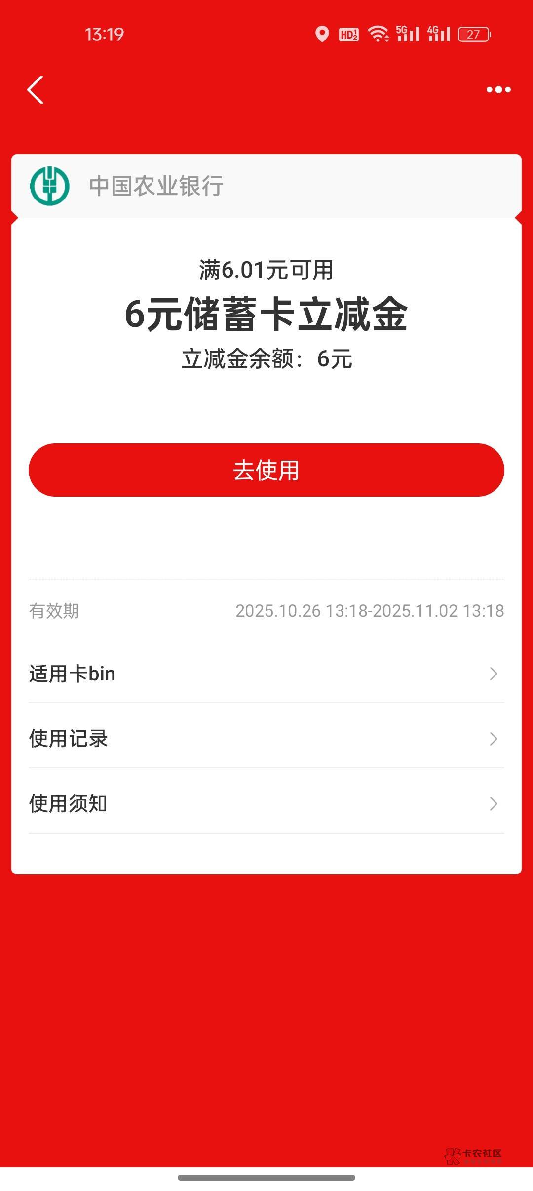 我是支付的时候提示立减才绑的卡