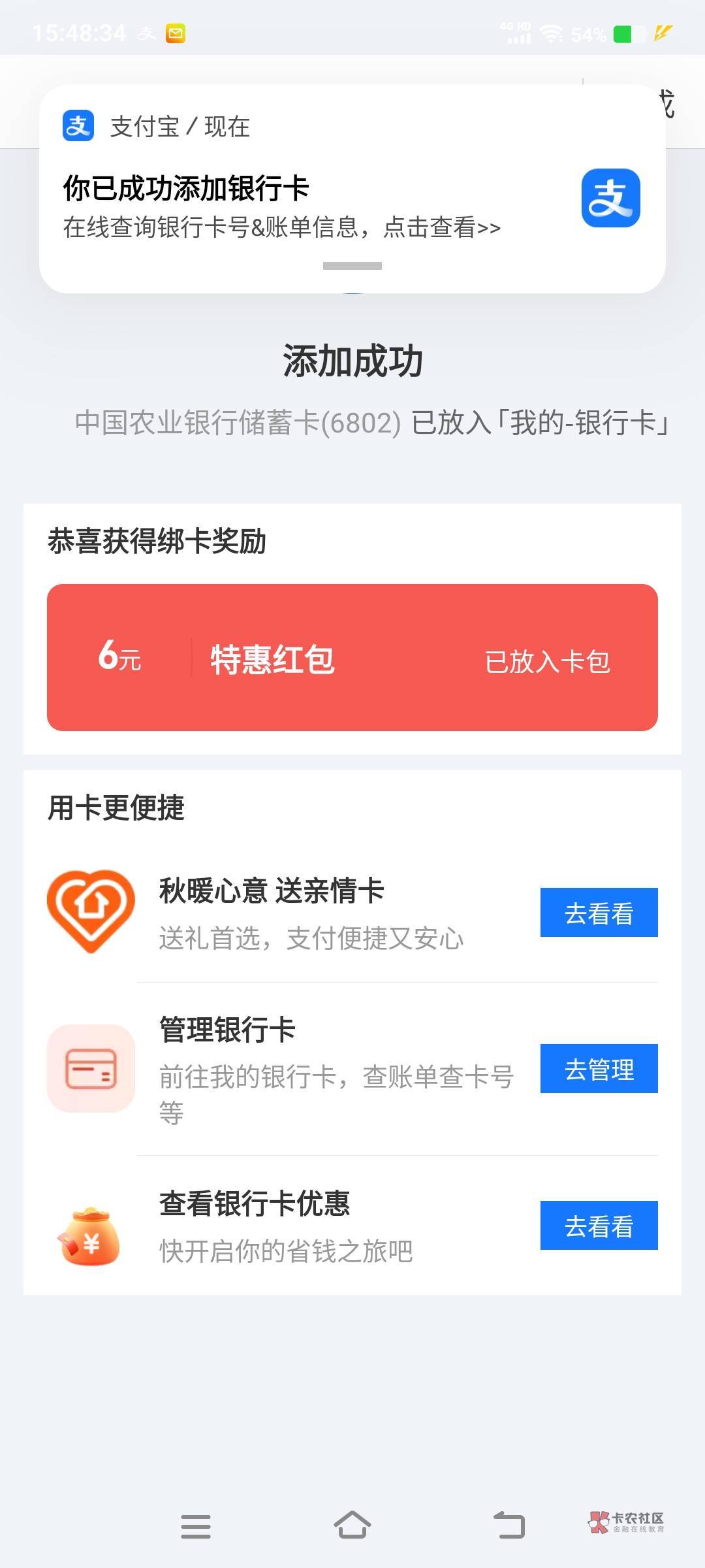 卡号62305003开头,支付宝绑卡6块红包,抖音支付立减8块,京东外卖立减8块
