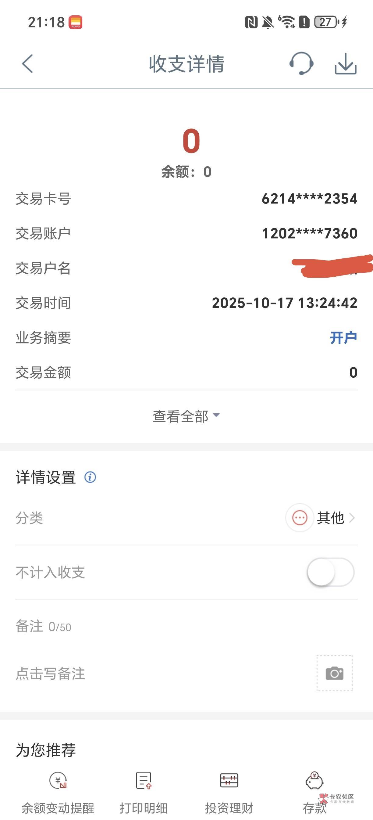 你查看资产,看有没有余额