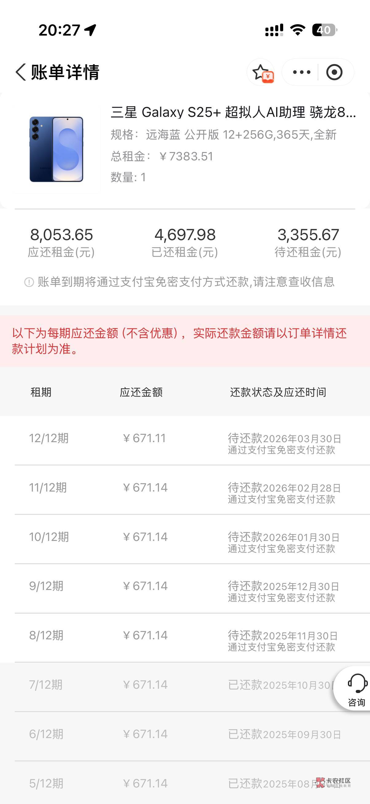 那确实不知道你咋扛下来的,按每台400块钱算,光租机还款都至少4000了