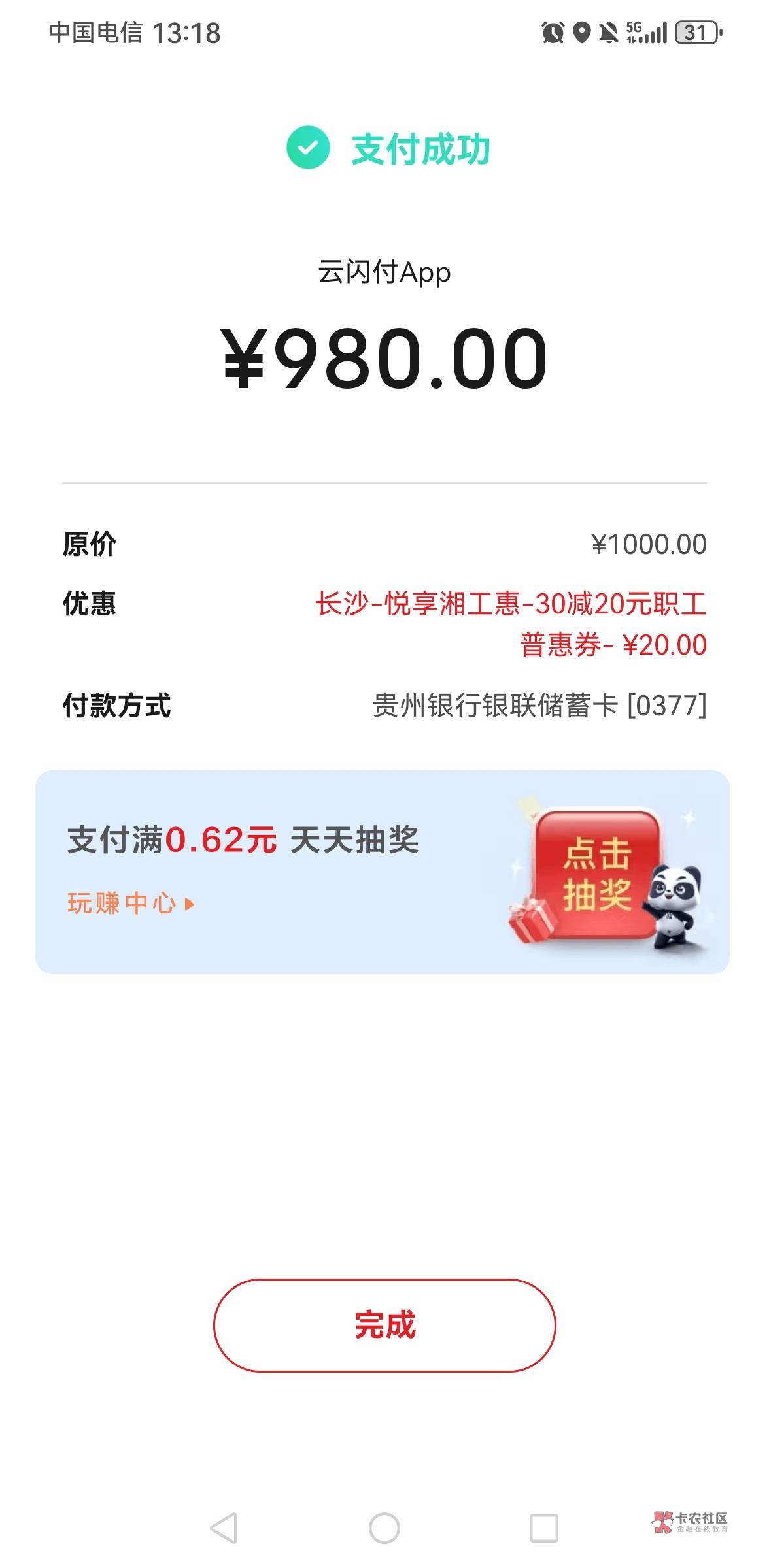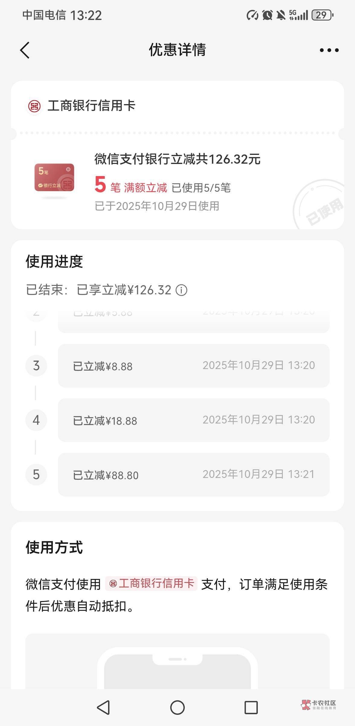 我看老哥有的,都是贵州信用卡,给了5笔和6笔,每个共计都是126立减金,不过6笔的手续费要26、5笔的要6