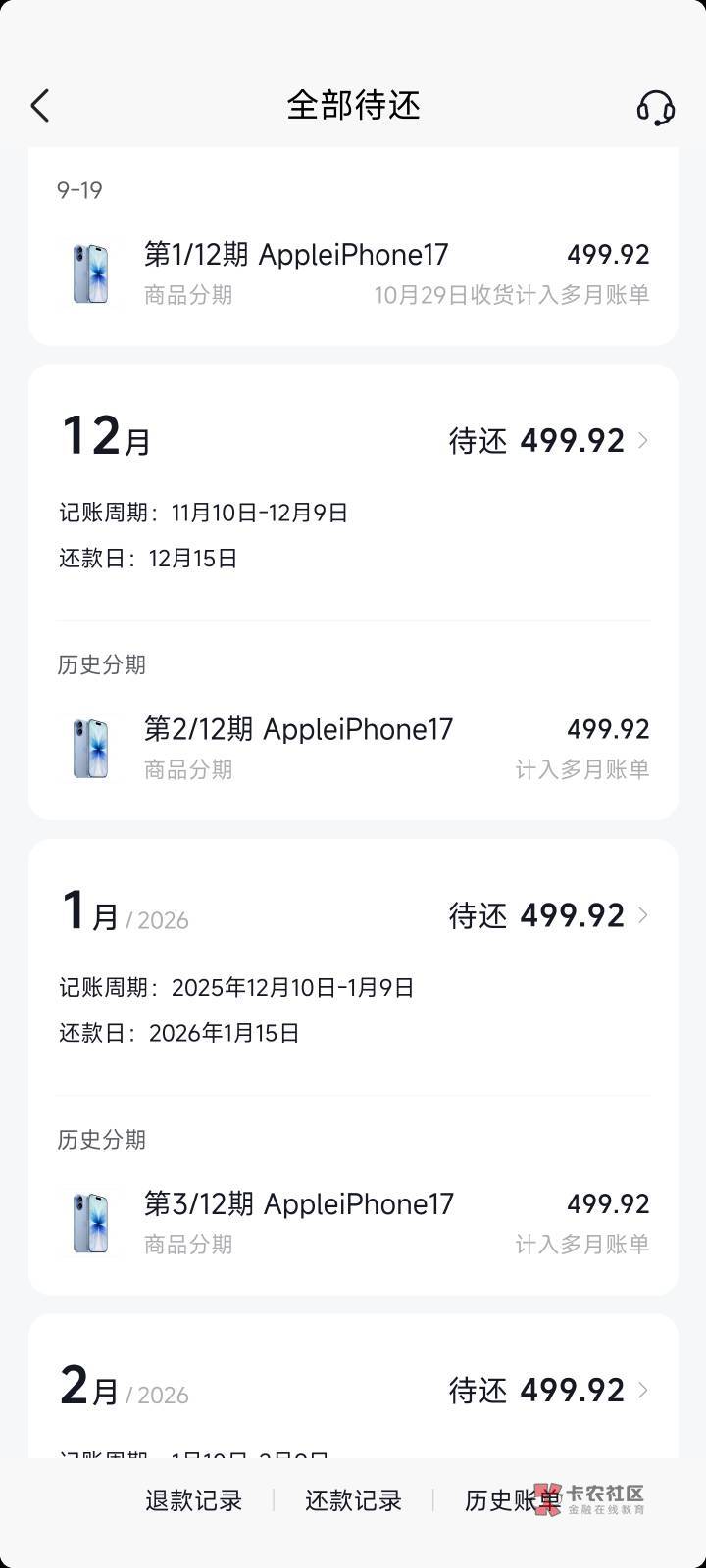 我去年卡的一台16pro还有1000多块钱还清 看了半天一直不能卡 不是额度不 足就是订单不支持