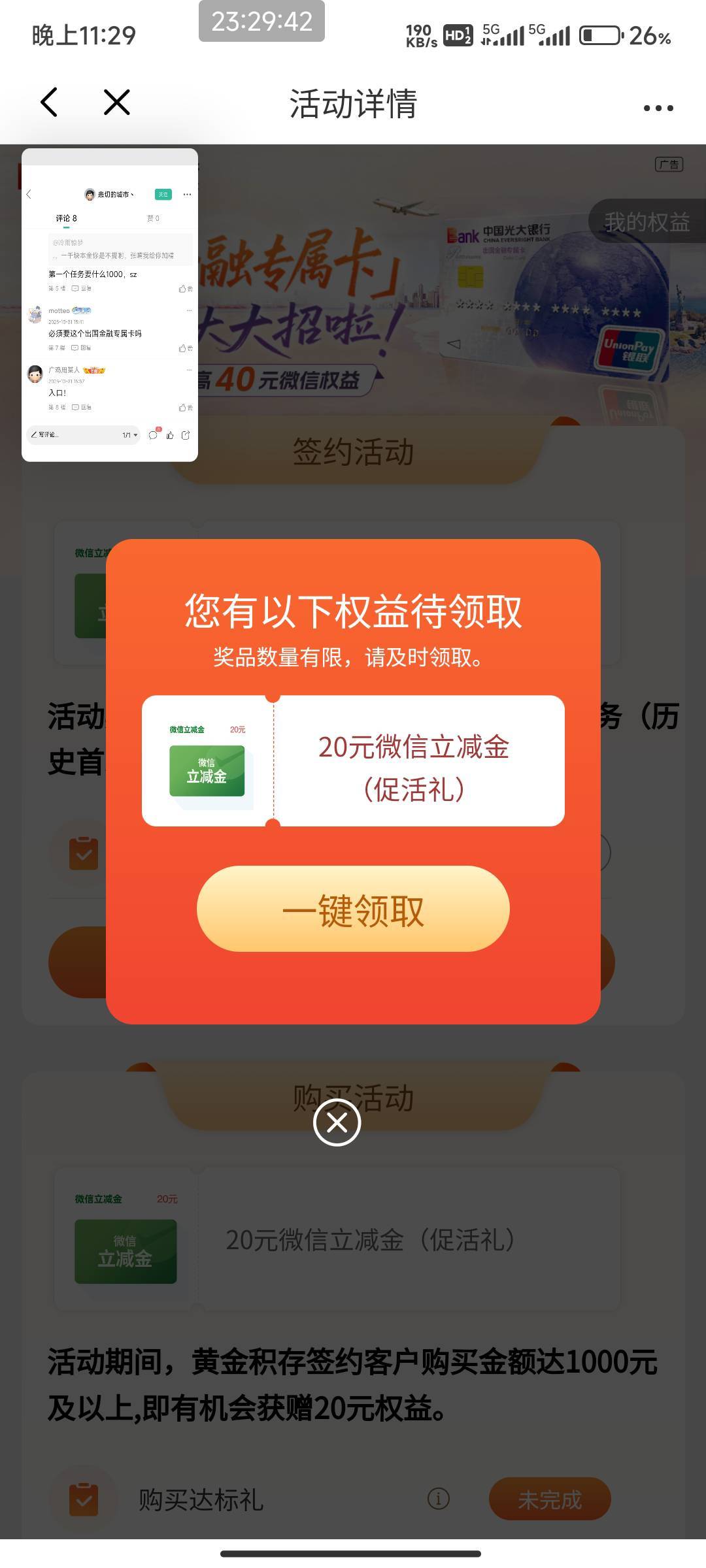 光大前几天签约的积存金可以领了,没收到短信
