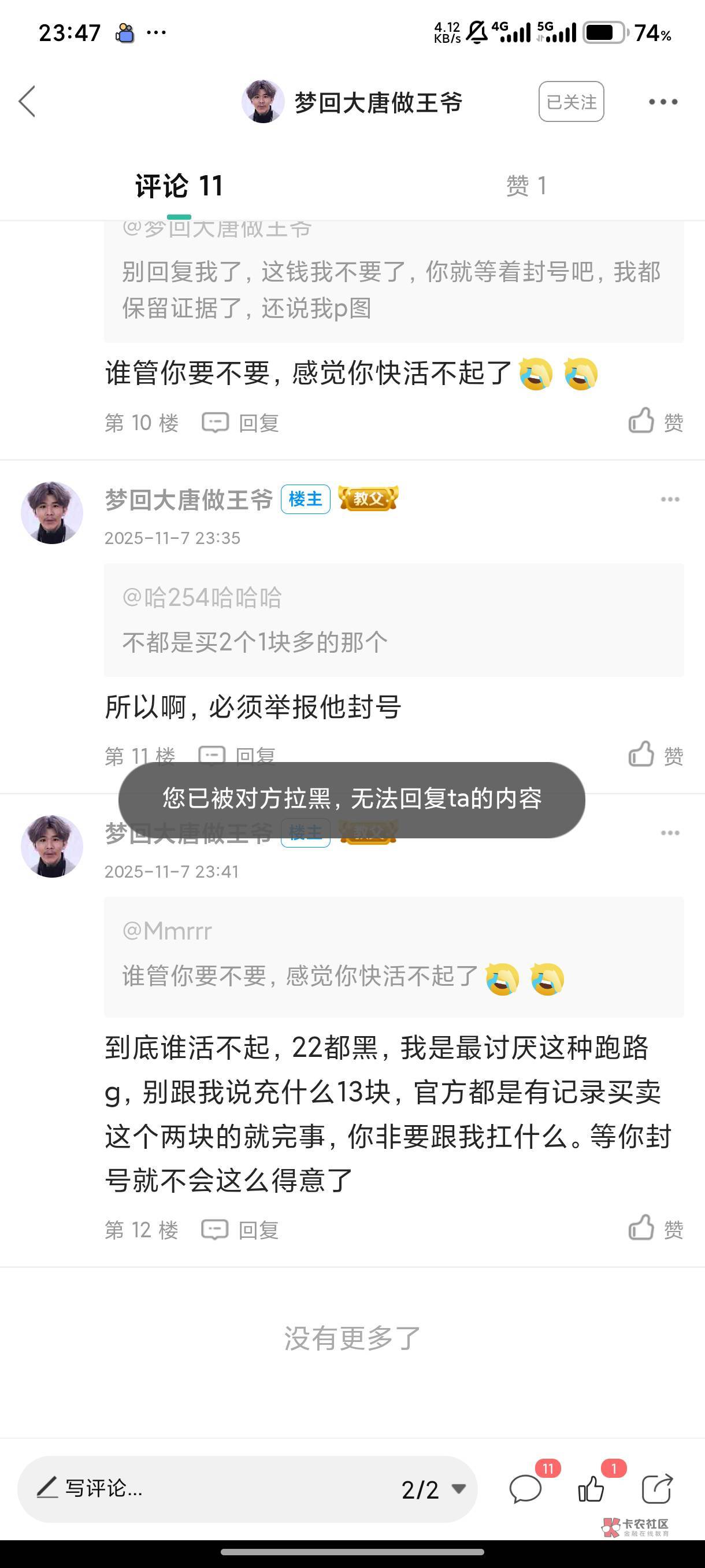 到底谁活不起,22都黑,我是最讨厌这种跑路g,别跟我说充什么13块,官方都是有记录买卖这个两块的就完事,你非要跟我扛什么。等你封号就不会这么得意了