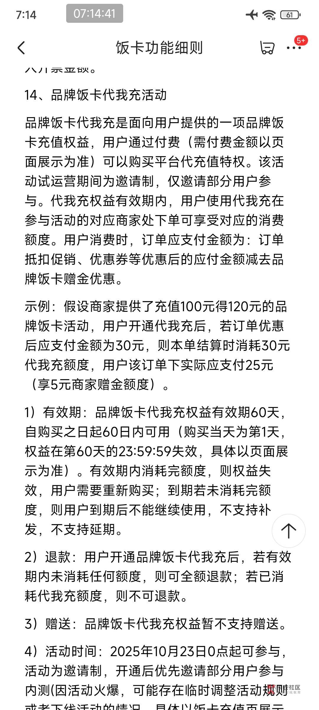 不是,我懂你意思,我是被这句话整懵了,我当是有了这个饭卡余额还要额外付款,应该是你说的那种饭卡的余额直接抵扣0元付吧 相当于60天应急吃饭后面到期还款挂壁崽 发表于 2025-11-09 07:18