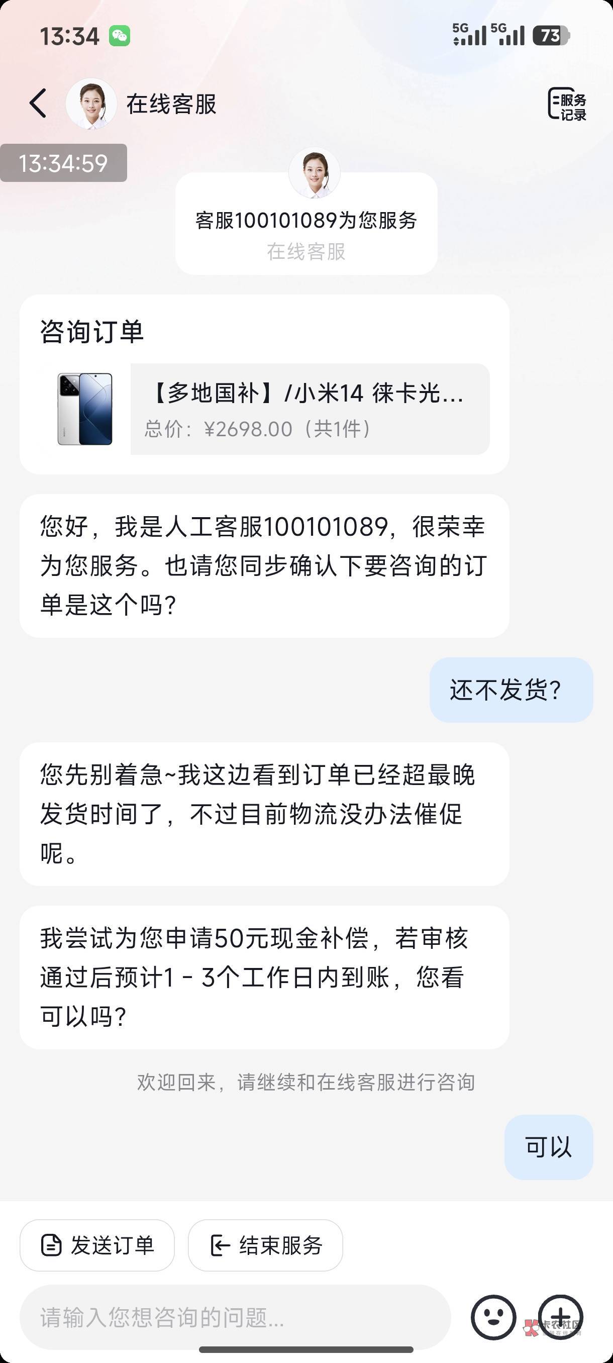 ?多久没发就补偿啊