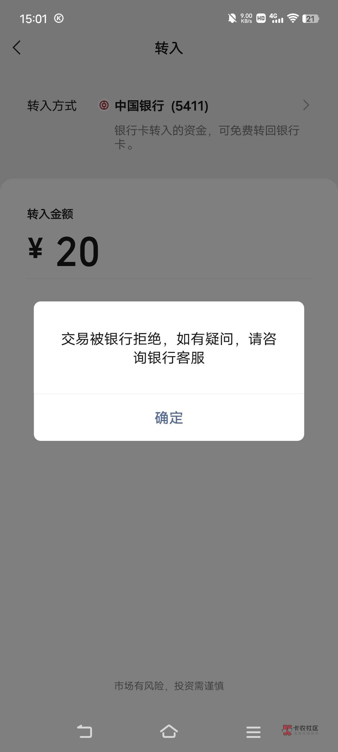 微信提示什么 我也是广东二类实体卡 昨天提了30进去就显示拒绝交易