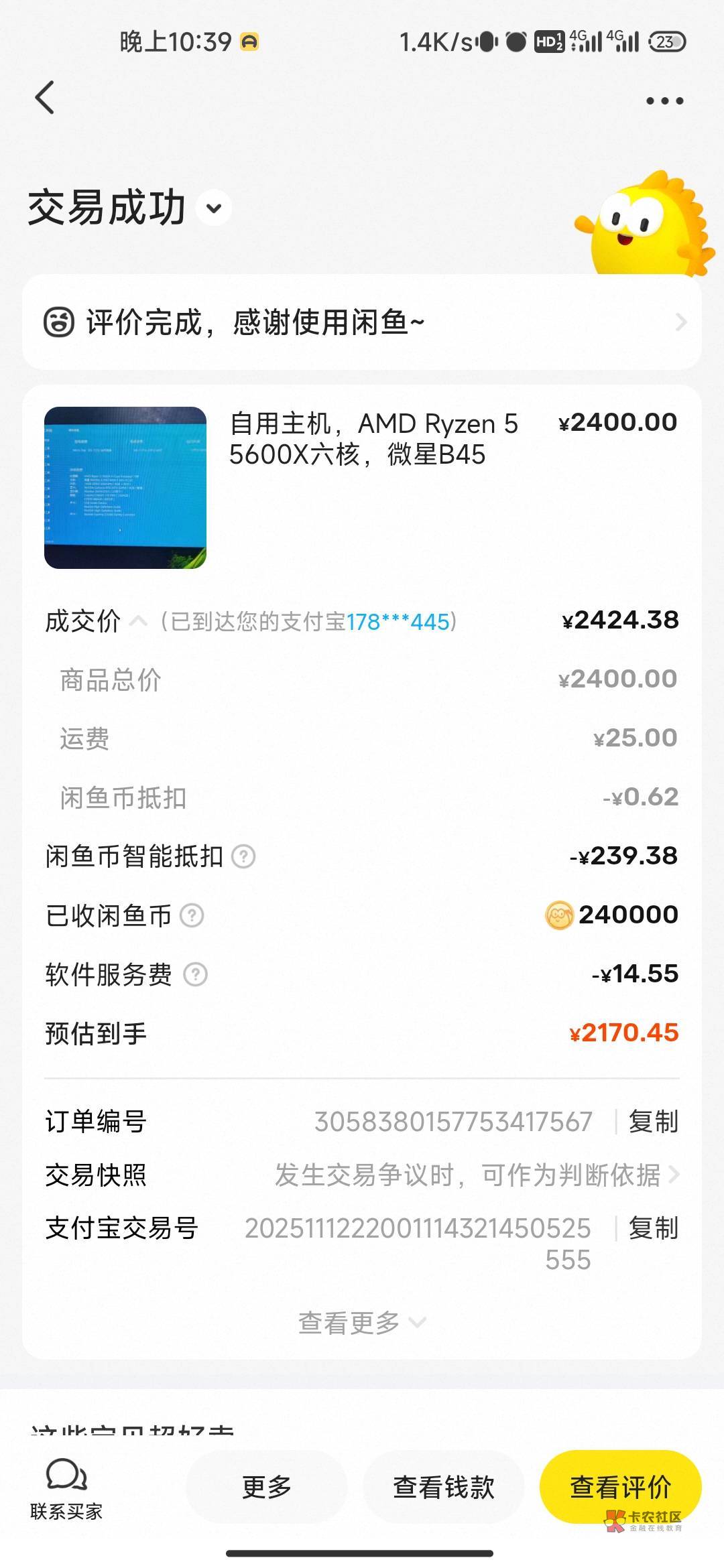 闲鱼币抵扣了240