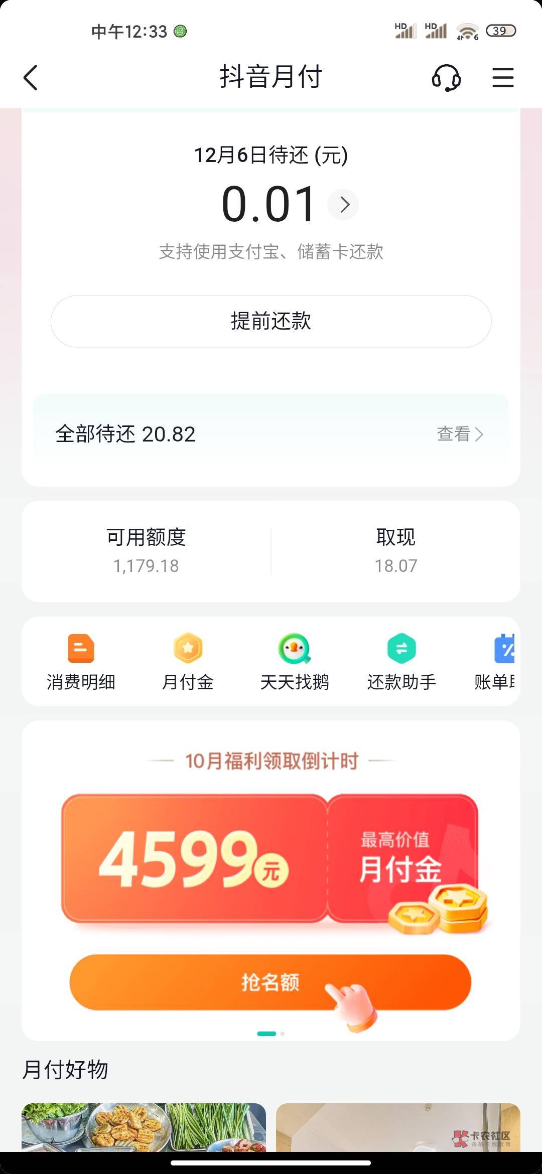 用小号T啊。先把小号的月付关闭了。然后下个什么抖音商城什么的,反正都是抖音系列的APP。然后再用小号登录,再去买东西就有月付了。
