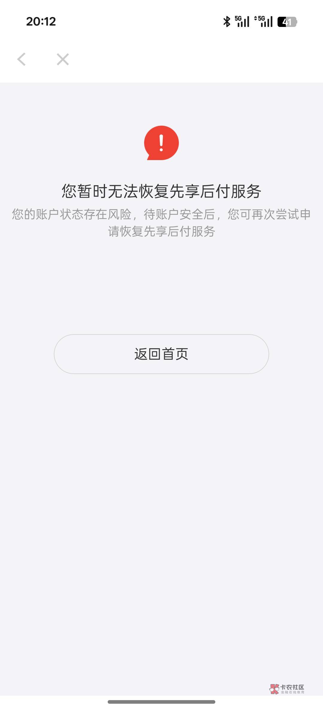 我之前T了两次也不能用,但是没有这个显示,就是不管买什么都没有先用后付选项,过了半个月又自己恢复了