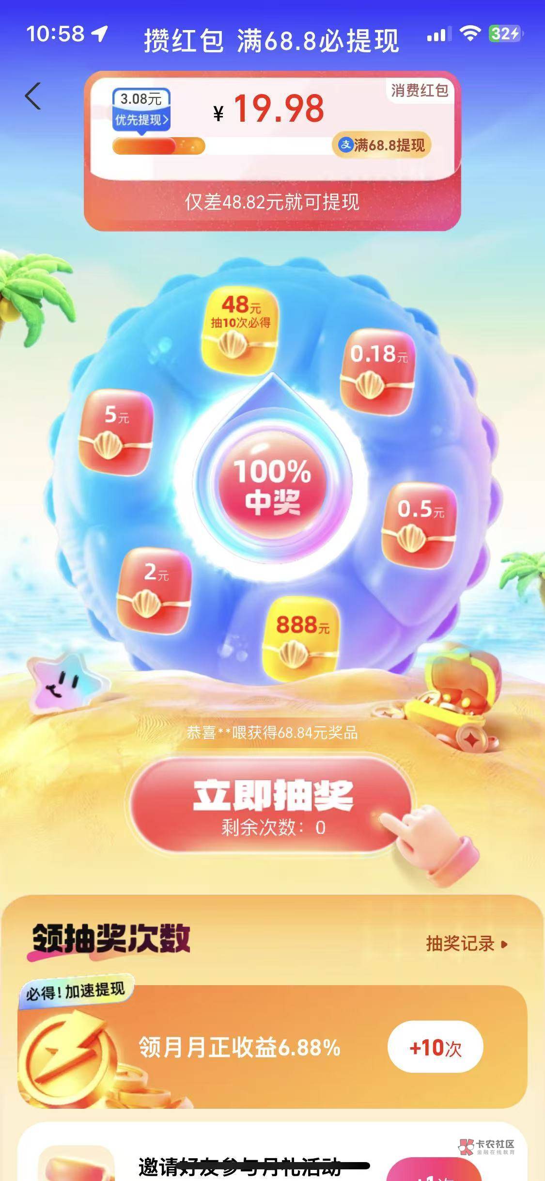 进去开户开完会有10次必得48。