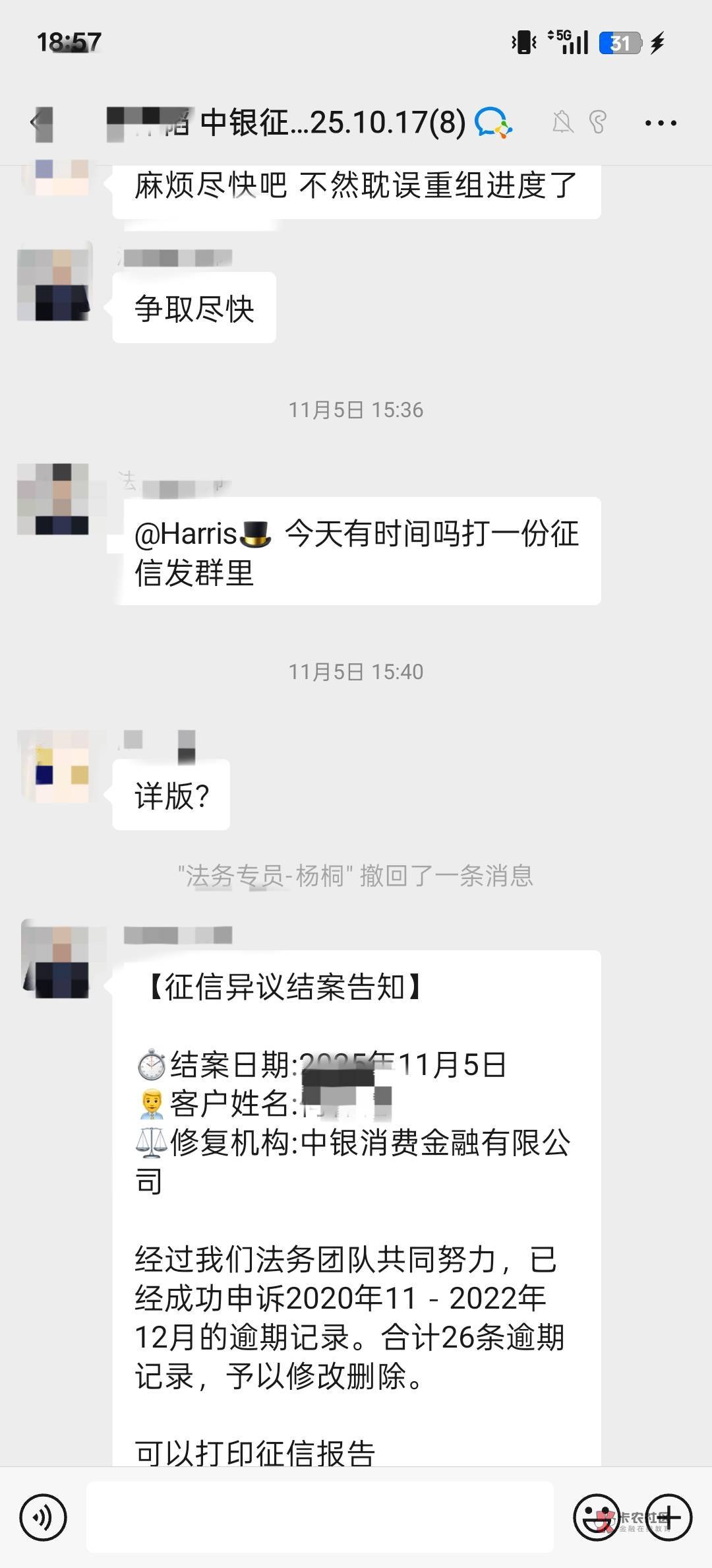 有个上海重组客户就消了,二十天解决的,中银26个月逾期,就特么几百块钱
