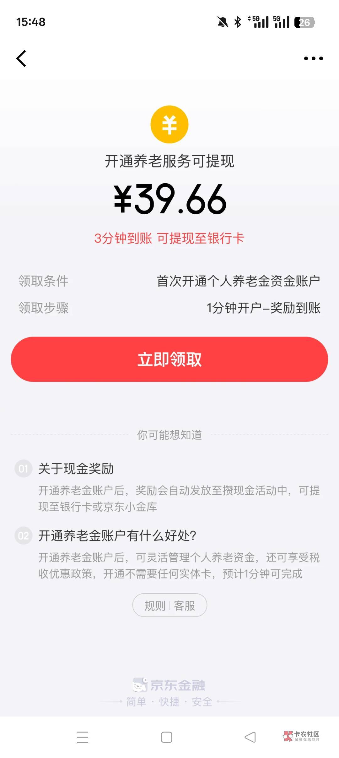 之前支付宝里工商还是交通来着开养老金有70红包