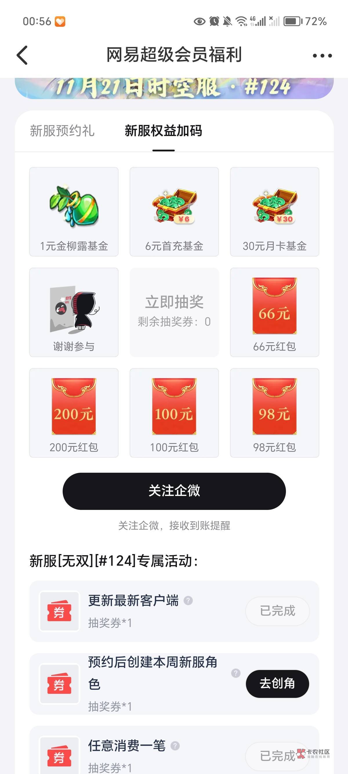 昨天打了螺丝登录跟消费的号可以抽