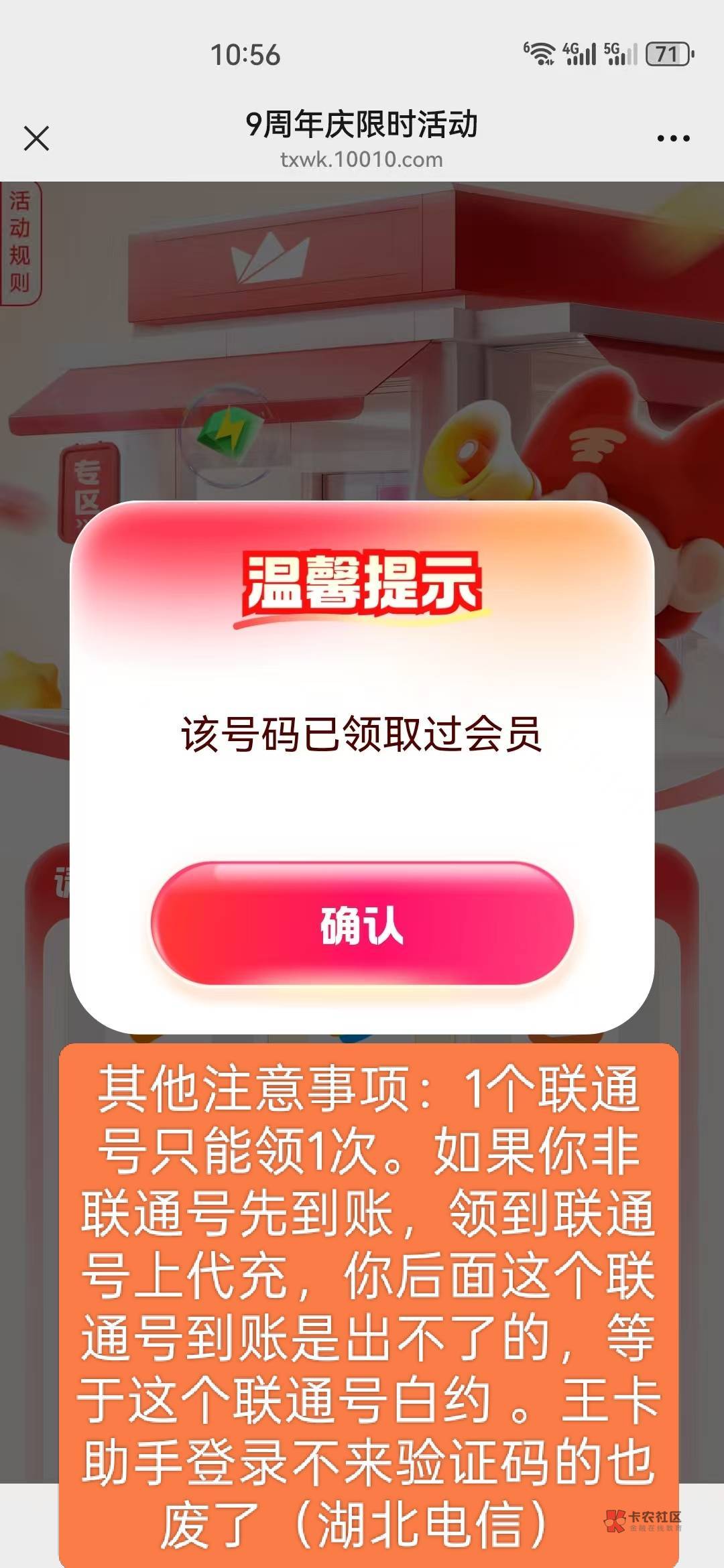 1个联通号领1次是前提。你b移动先到账,可以领到a联通号上的,a联通后面到账领不了的,所以不要领,(我湖北电信不来验证码)
