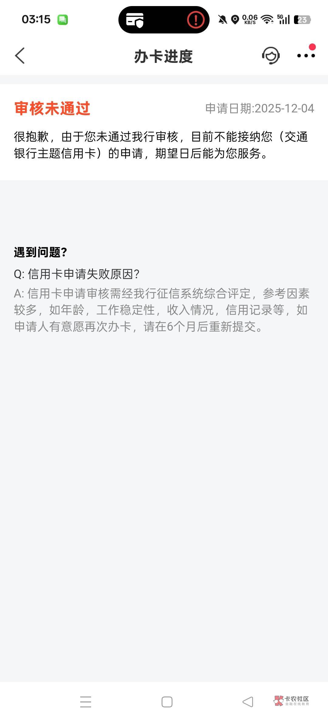 只有审批失败,没有出来信用卡