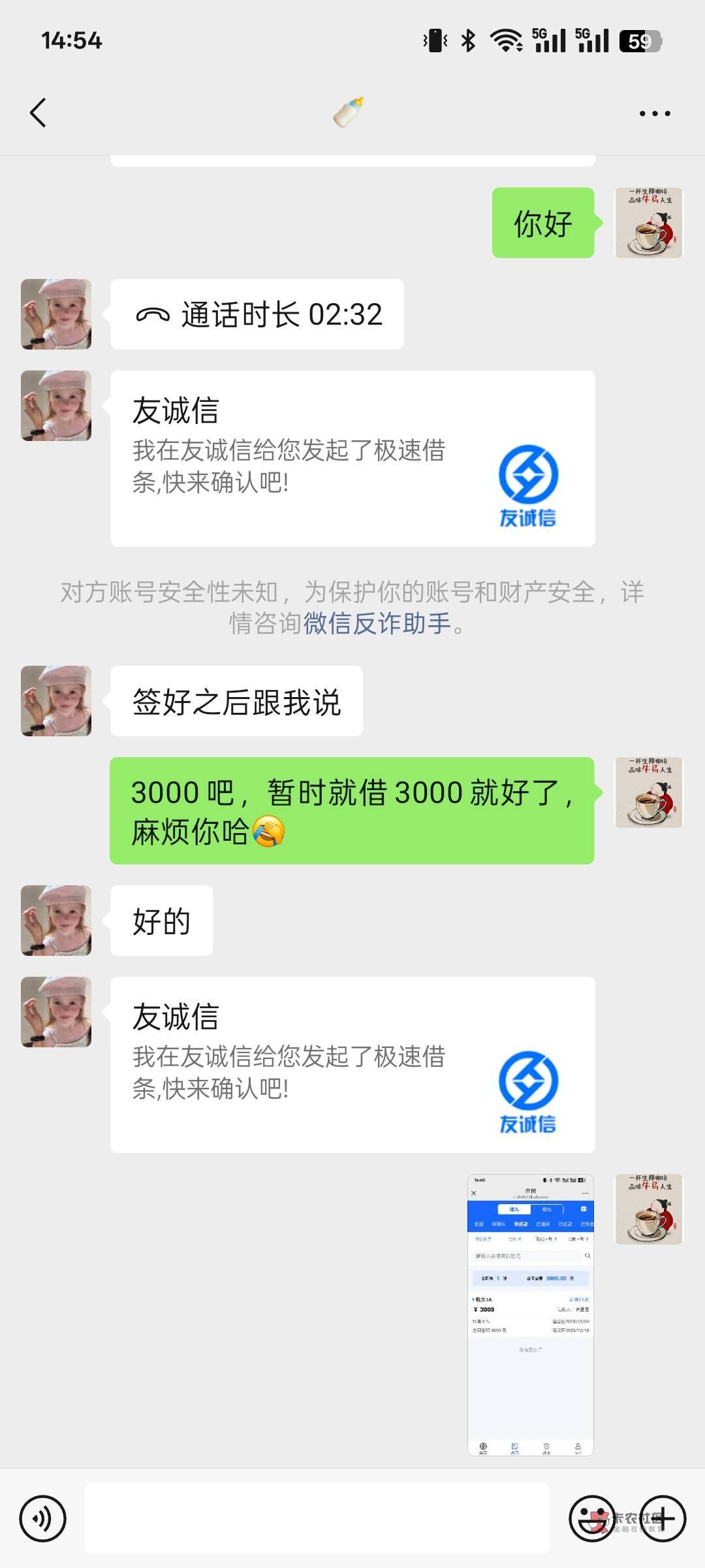 看头像和我用的同一个条子,直接联系我的,也是啥也没看,让我发了微信账单3个月的流水就过了