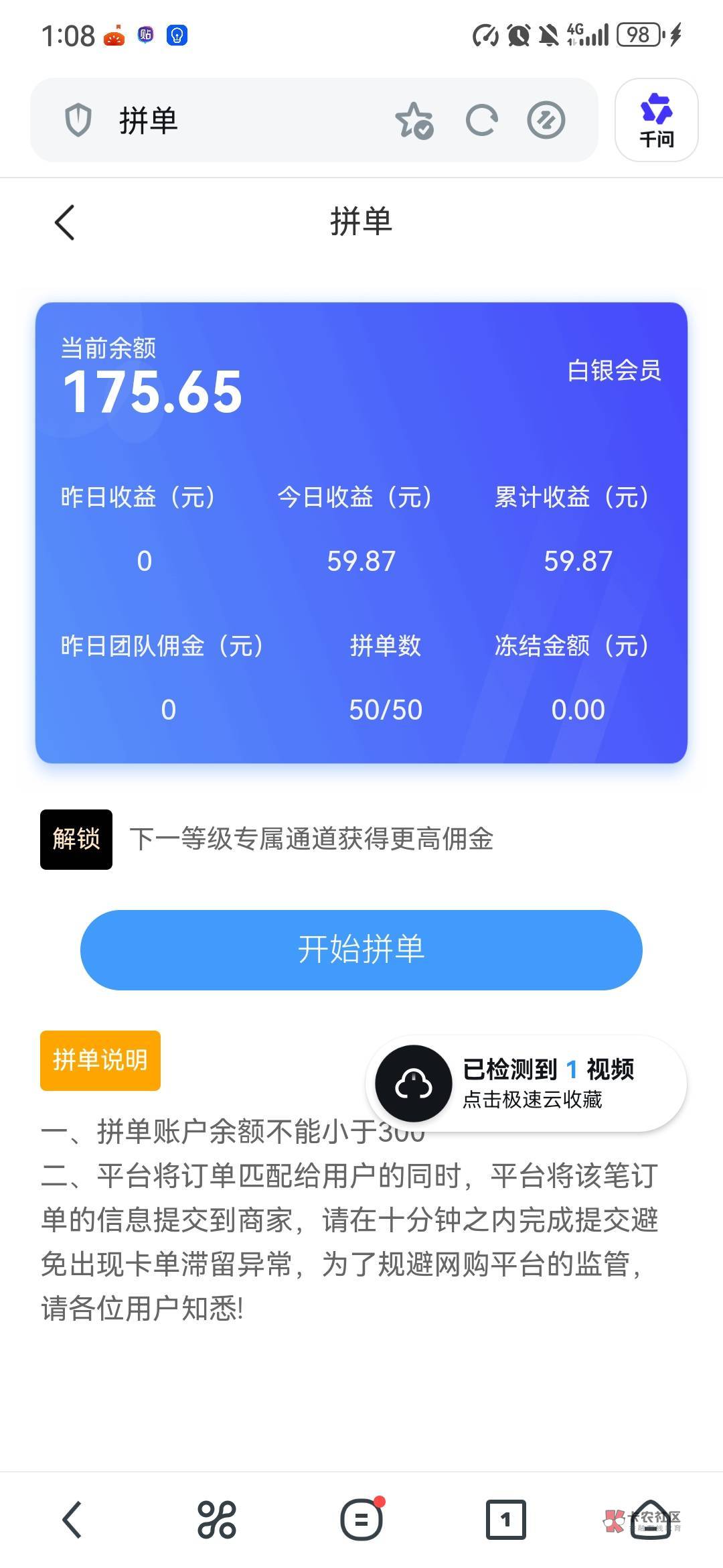 算是吧,本来刷了两天有300多了,故意设置了连单,,,不充完成不了,满50单和300才能提