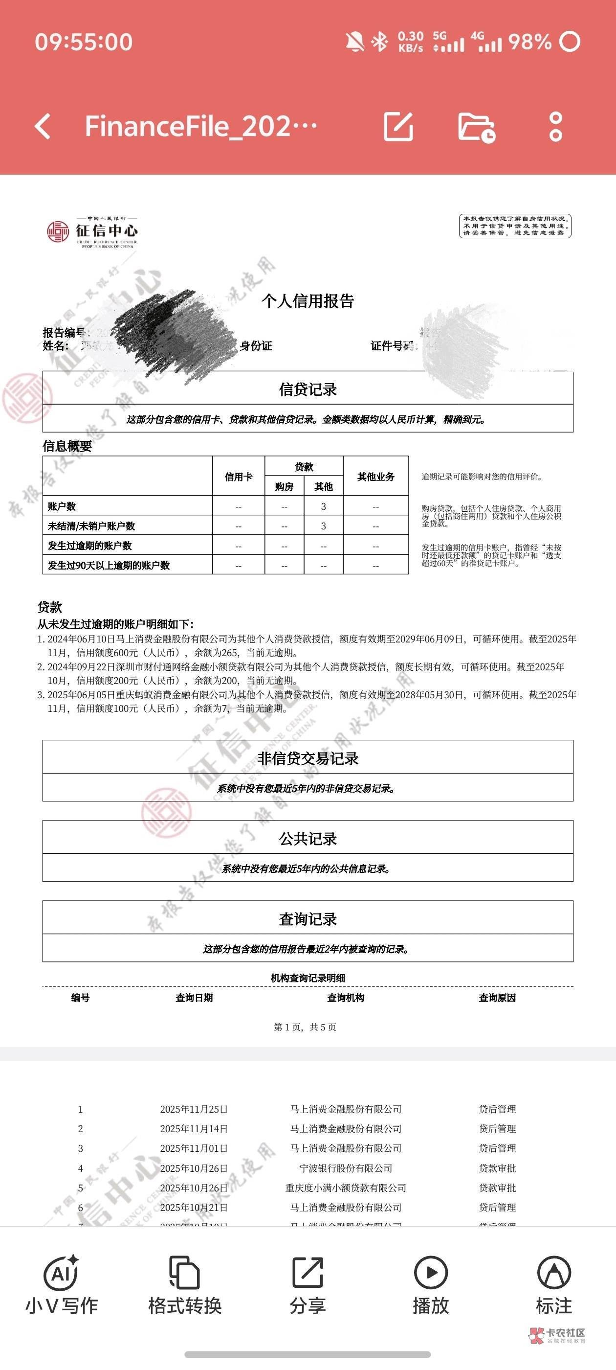 你这份征信可以申请车贷,核心优势是没有任何逾期记录,且现有负债金额极低,还款能力层面无明显问题;但2025年10-11月有多家机构的贷款审批查询,短期内查询频次偏高,银行可能会因此适当调低审批额度或小幅提高贷款利率,不过并不会直接导致车贷申请被拒。