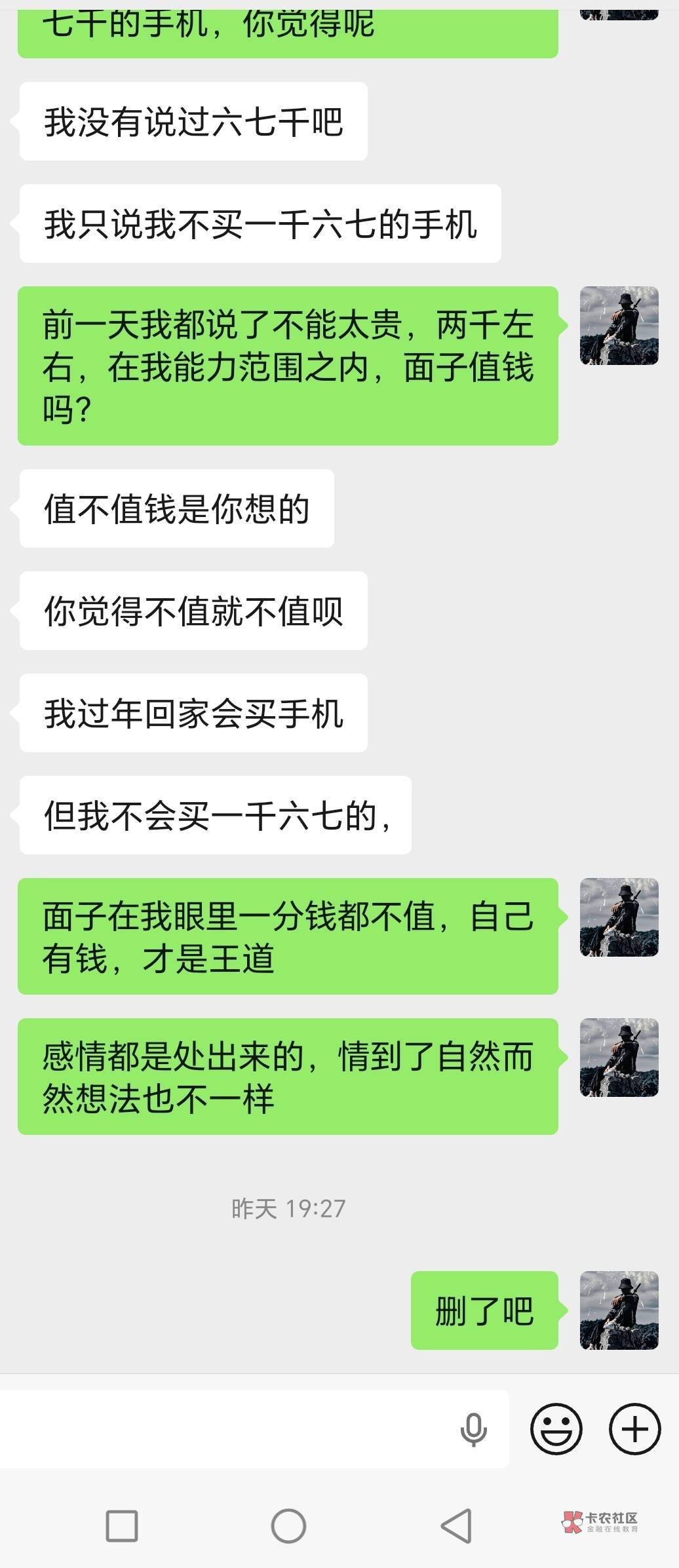 这种还留着干嘛?面都没见。不是老哥说你。你应该年龄不大。我几个前女朋友我从来没有给他们买过贵重东西。不是老哥扣。他们也没要过。大家谈对象吃吃喝喝就行了买买衣服也正常一下子大几千的谁是冤大头啊。当然了。我也有过人之处嘴会说D也大。我说肯定有老哥再说我笑起来。但是就是这样。