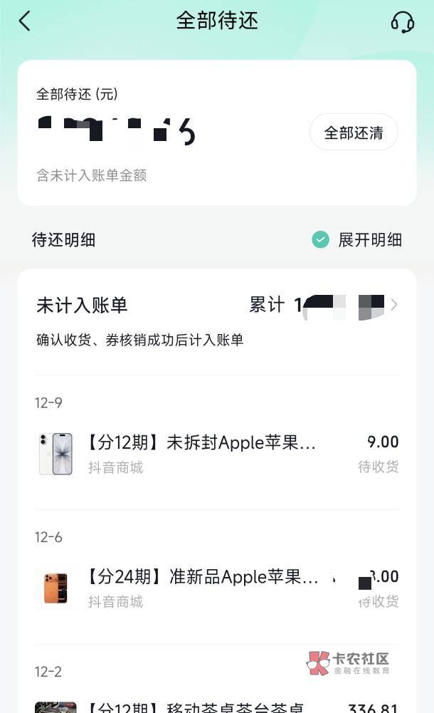 我的一千额度,弄三个苹果了,欠二万多了