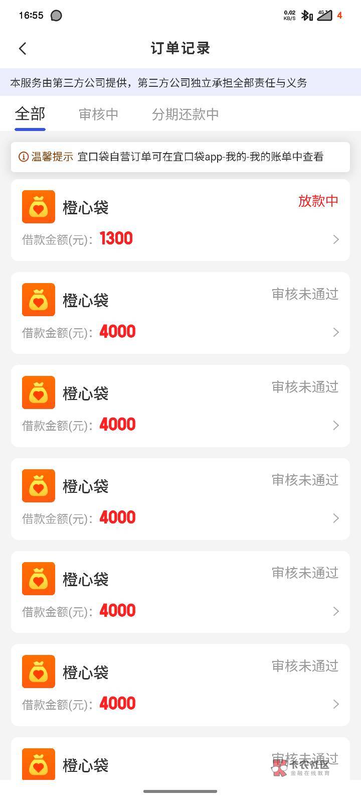 我6号发短信来叫申请的,到现在还是在放款中,我宜口袋逾期4000,他给的4700额度