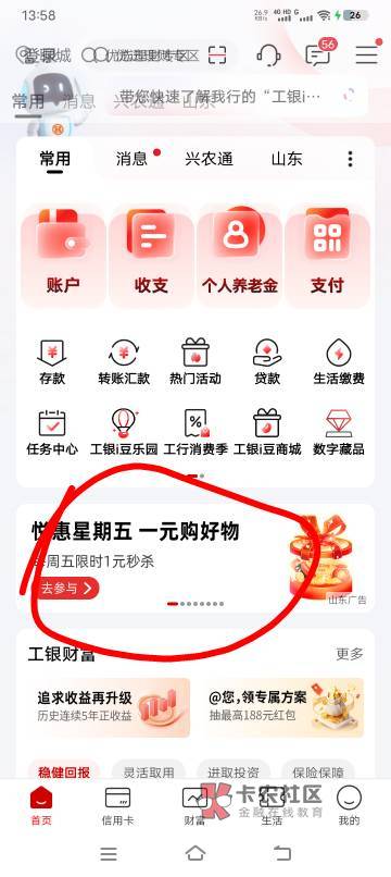 山东老哥,工行月刷月有礼能抽了
