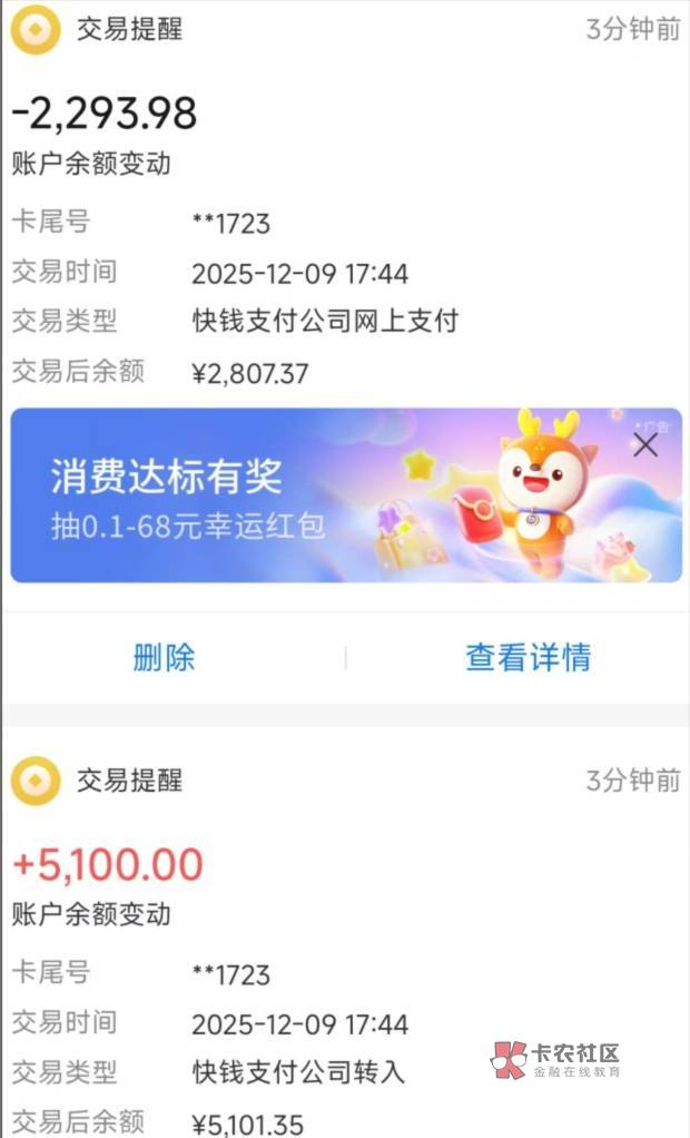 嗯,到了。把卡设置了限额还是被扣了,设置错了。这玩意秒扣,转都转不出来。