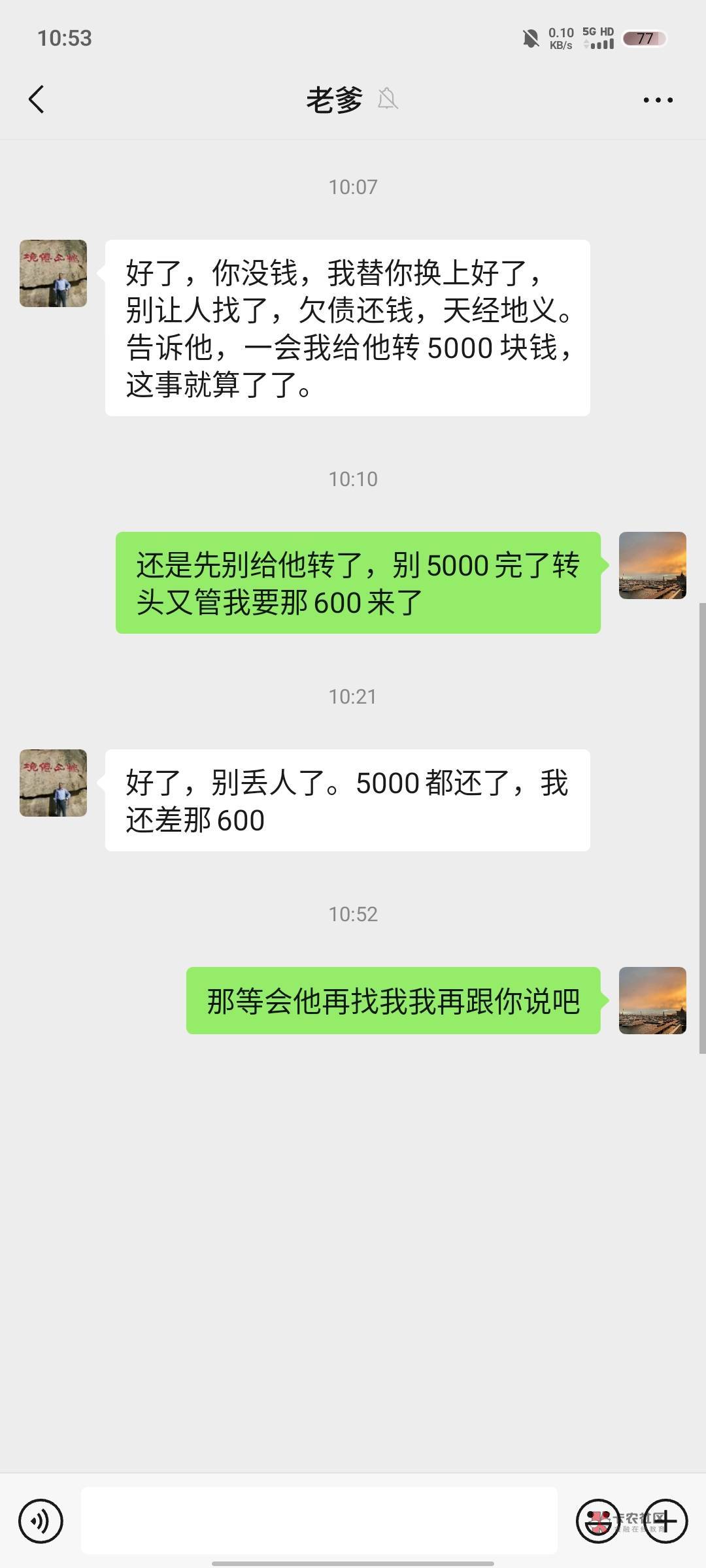 告诉你爸,5000要你转,然后过一手,还有剩余,美滋滋
