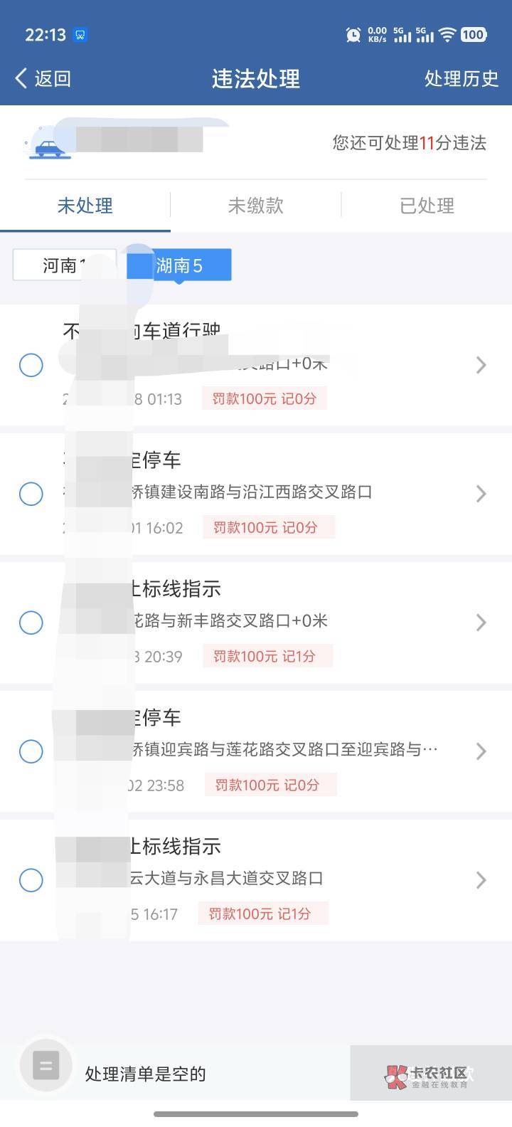 俩个六分,五百罚款还没处理