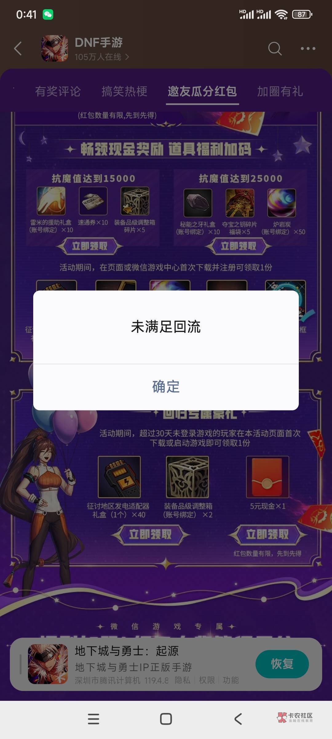 分不够呐,我就那个号领不了,也是显示不满足回流