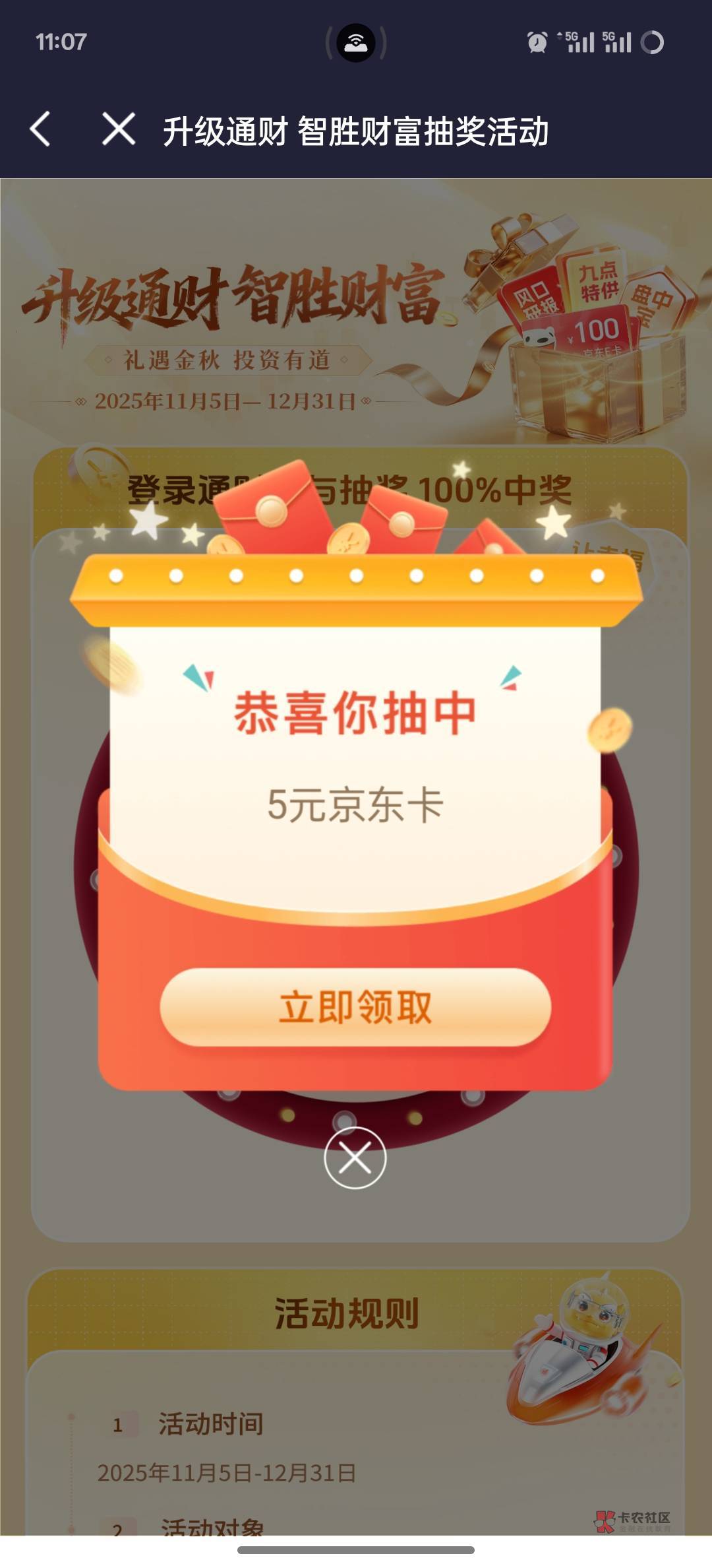 这个昨天我中100e卡